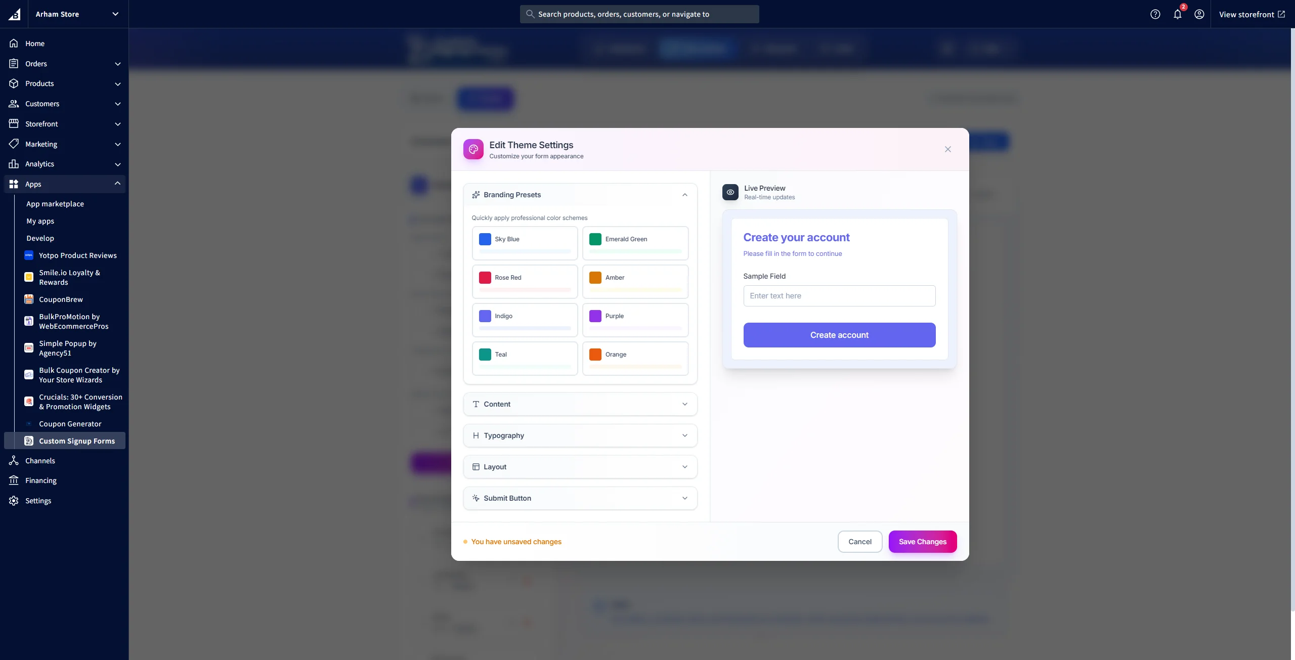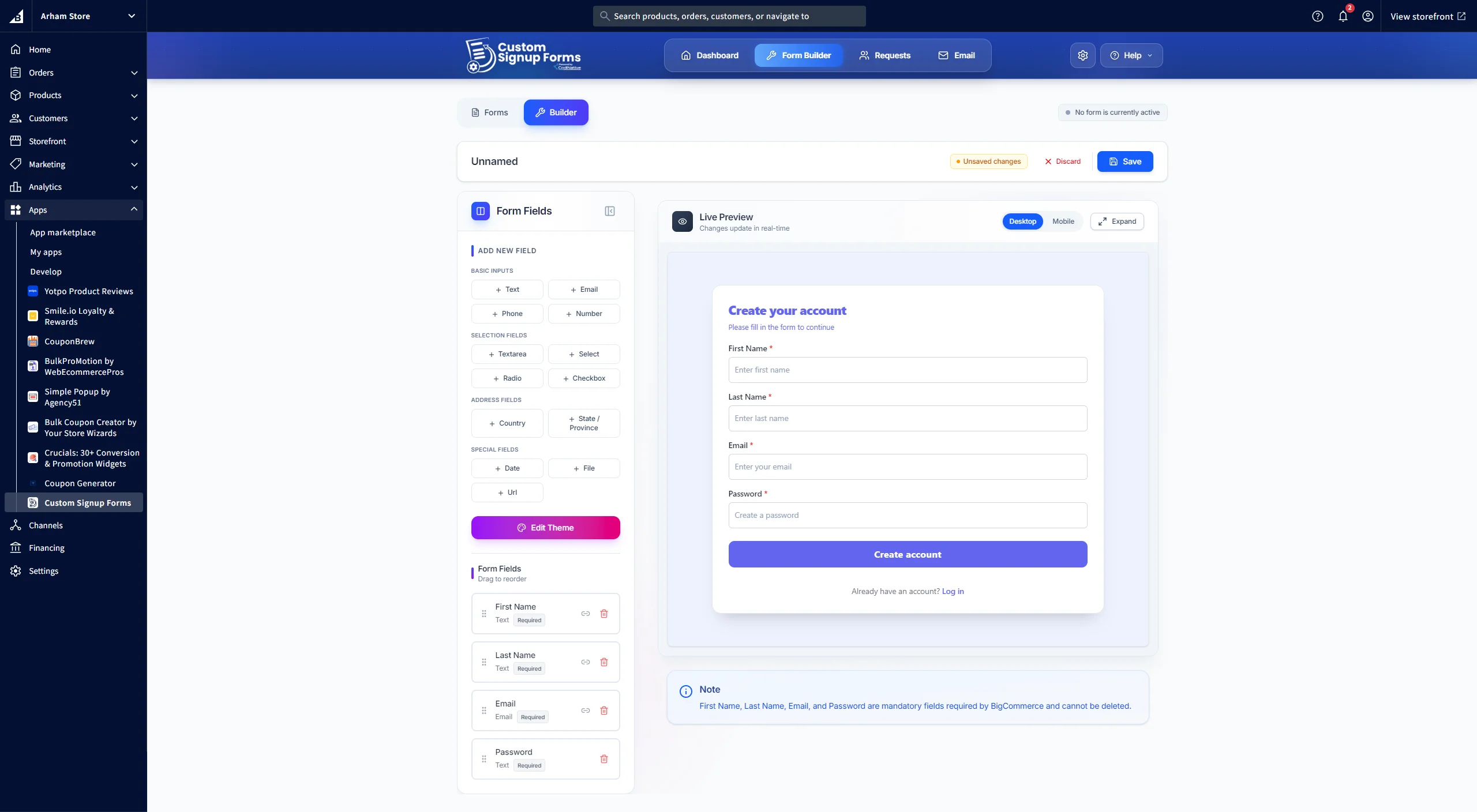 Welcome to Custom Signup Forms, a powerful application designed to help you create, customize, and manage custom signup forms for your BigCommerce store. This application provides complete control over your customer registration experience, allowing you to design beautiful, functional forms that match your brand identity.