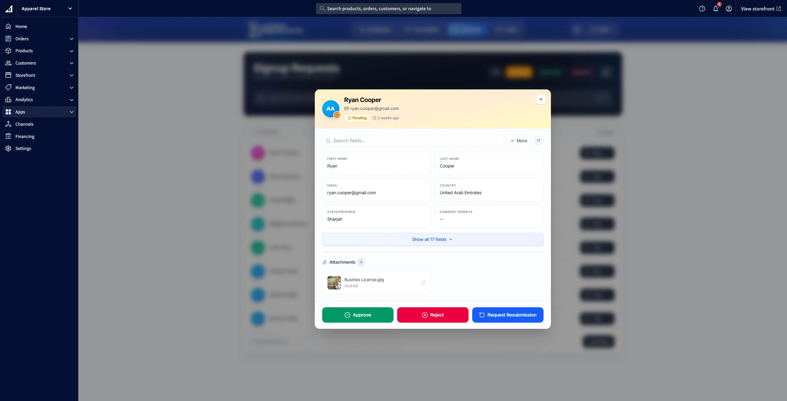 The Requests section allows you to manage all customer signup submissions efficiently.