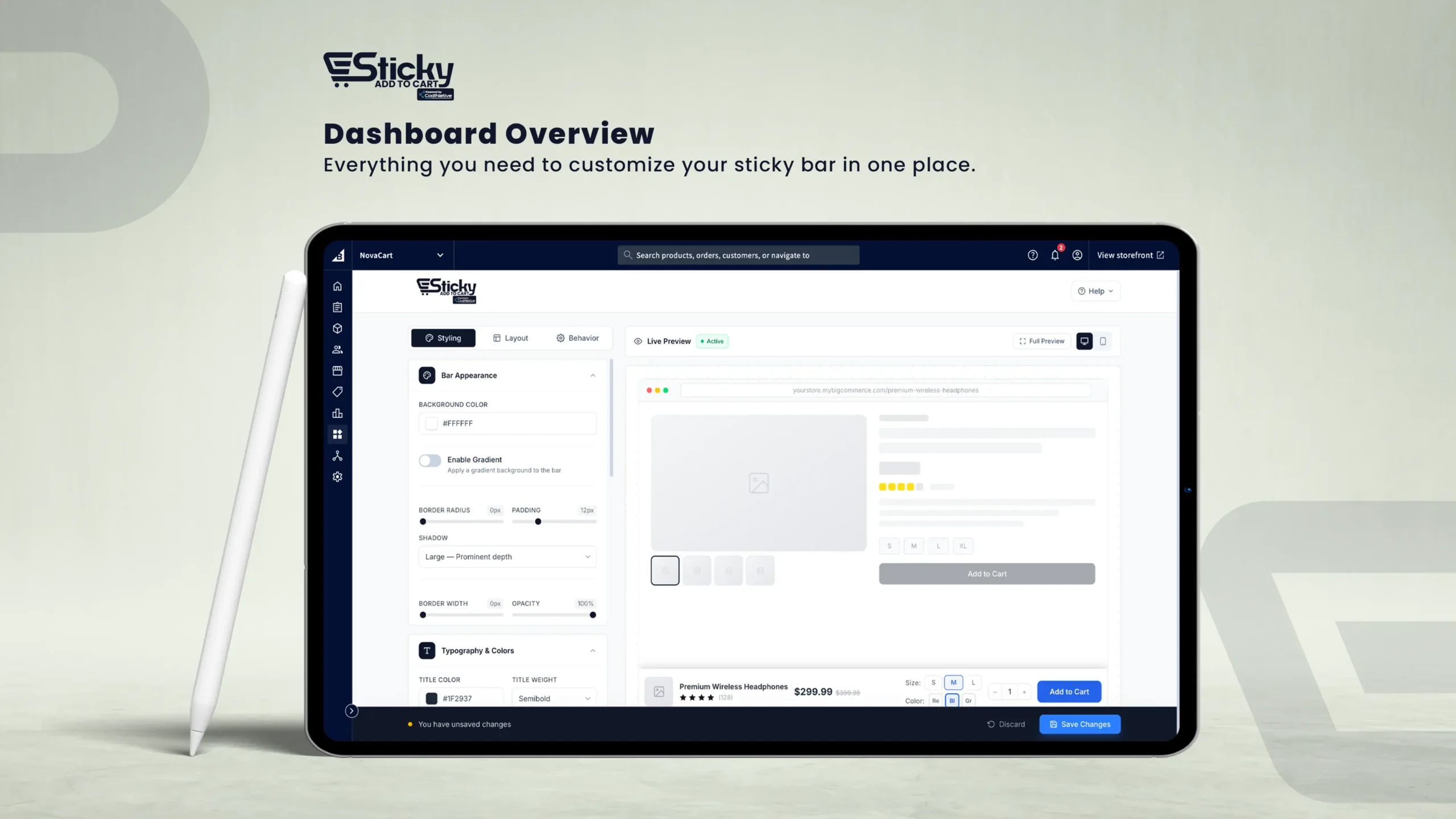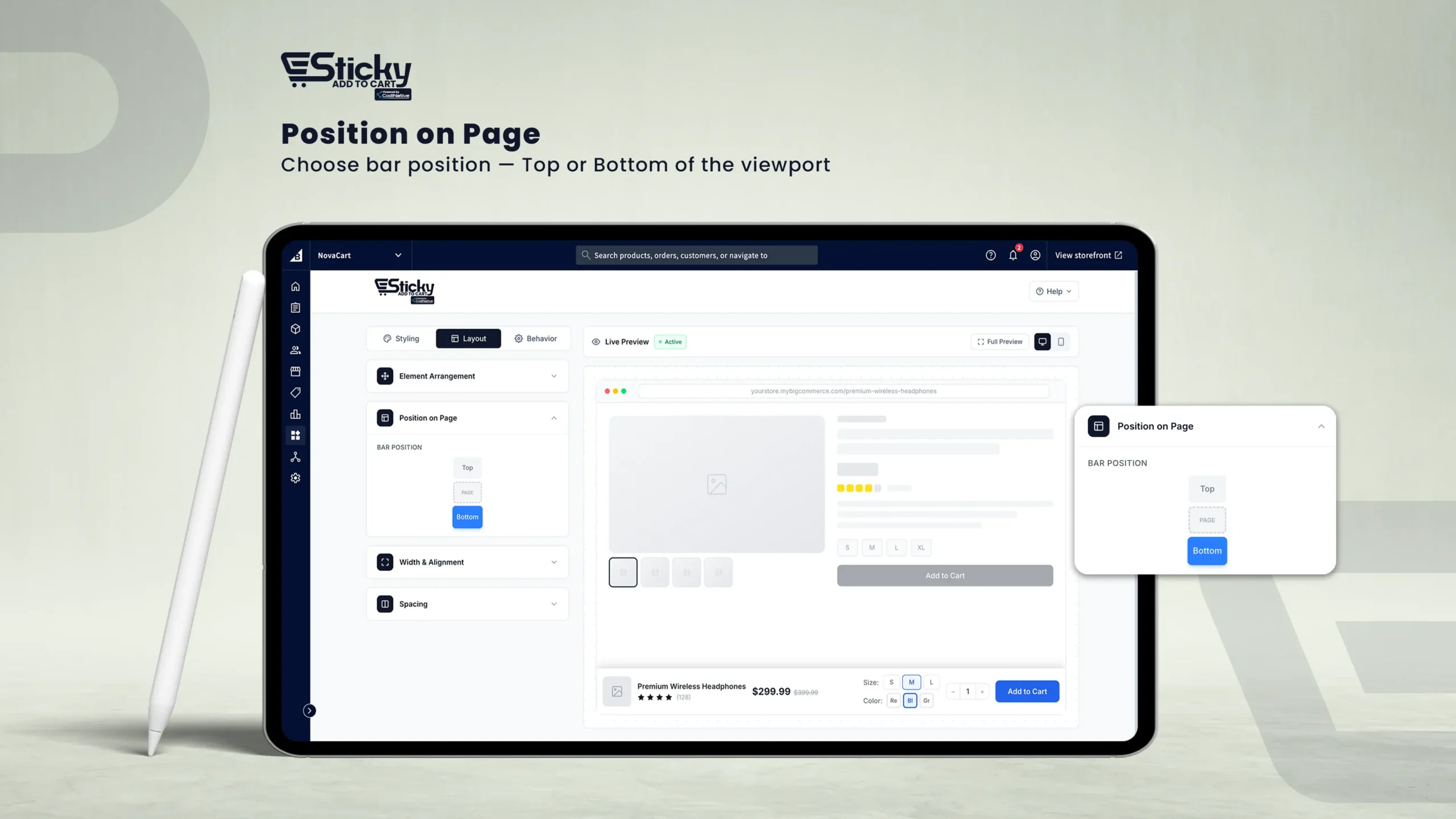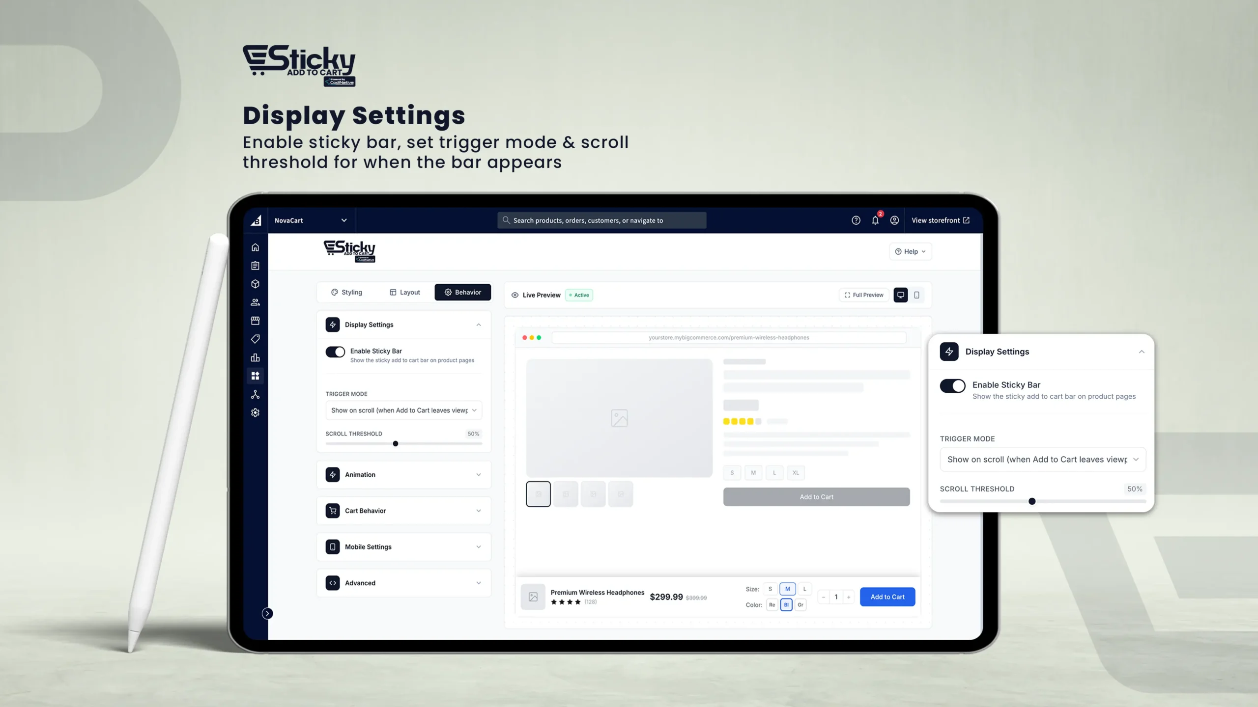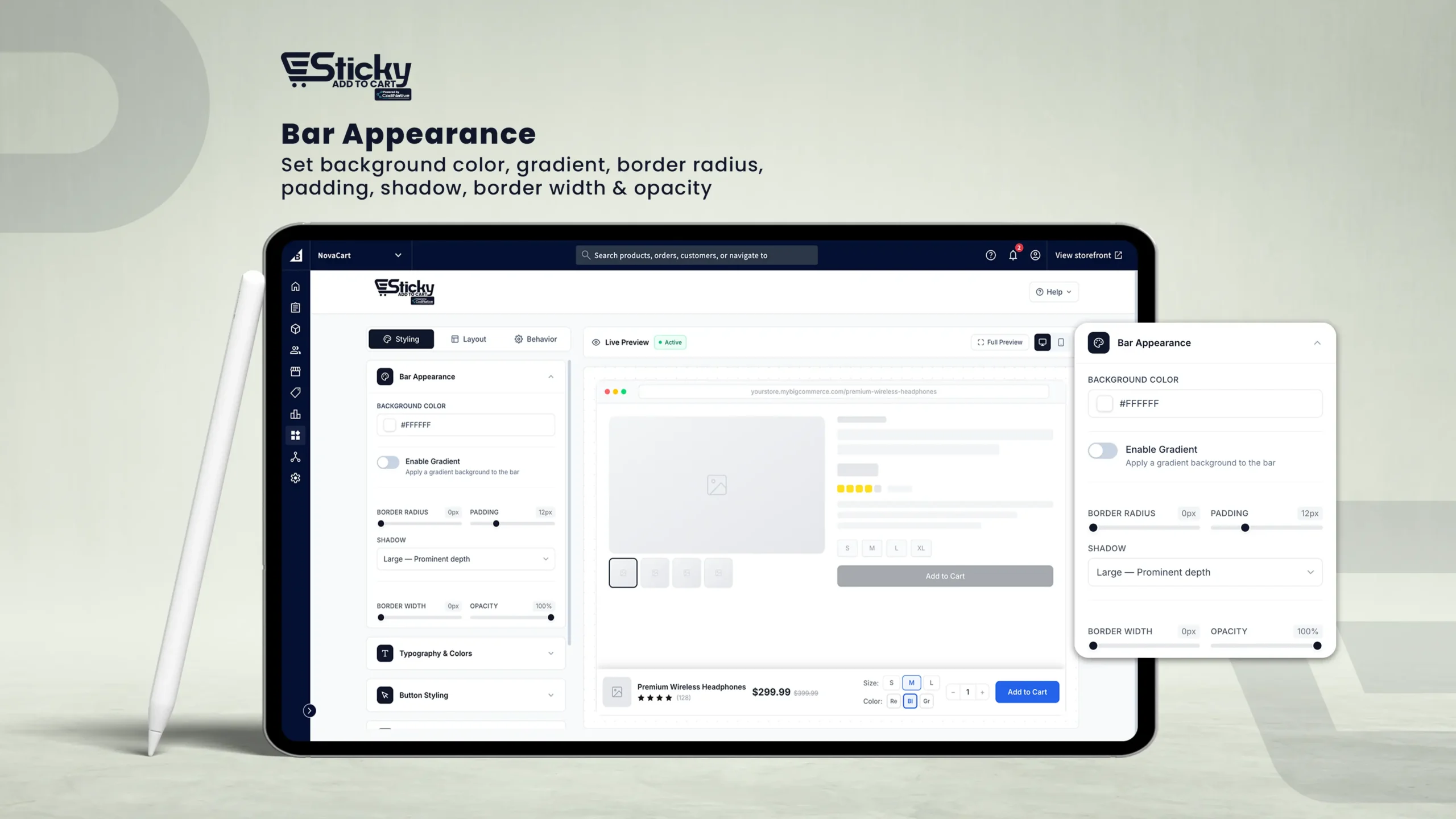 Everything you need to set up, customize, and optimize the persistent Add to Cart bar on your BigCommerce store — no coding required.